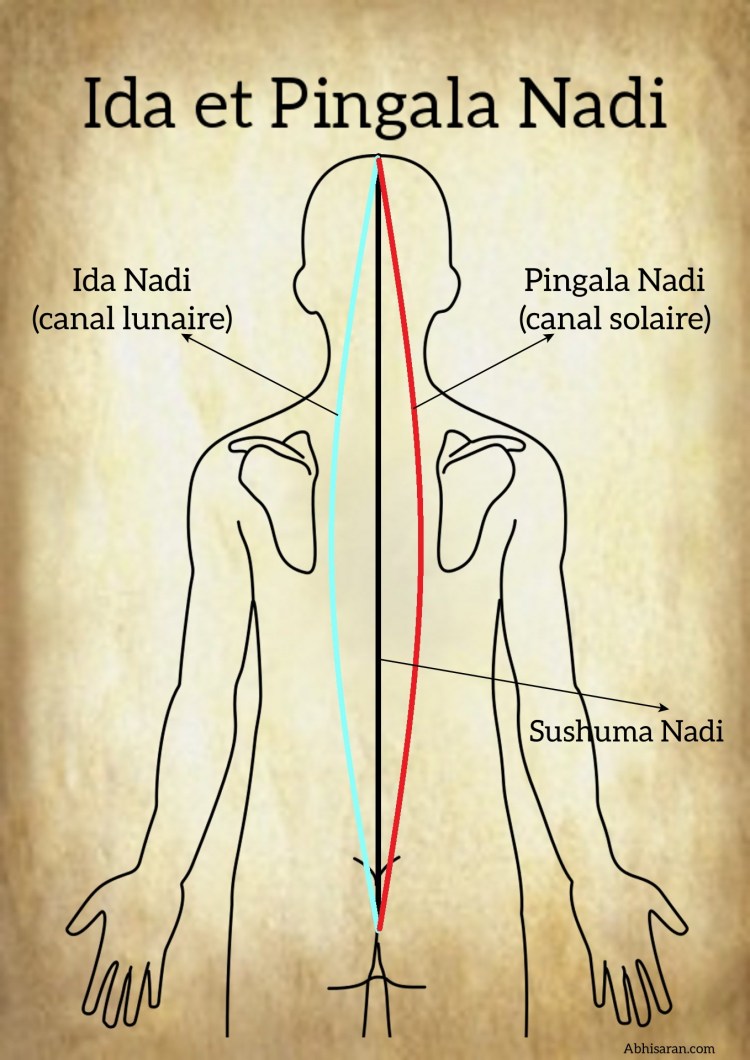 Les Nādī sont les canaux énergétiques sur lesquels bougent notre prana. Shodhana veut dire « purification ». A travers Nādī Shodhana, nous cherchons à purifier nos canaux énergétiques. Cet exercice cible 2 Nādī en particulier : Ida (canal lunaire) et Pingala (canal solaire). Ida Nādī gère les aspects émotifs et créatifs de notre être et Pingala gère les processus vitaux.